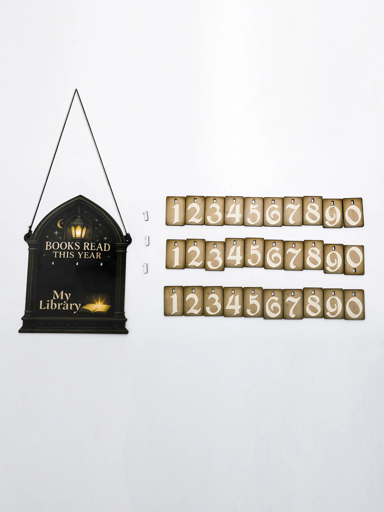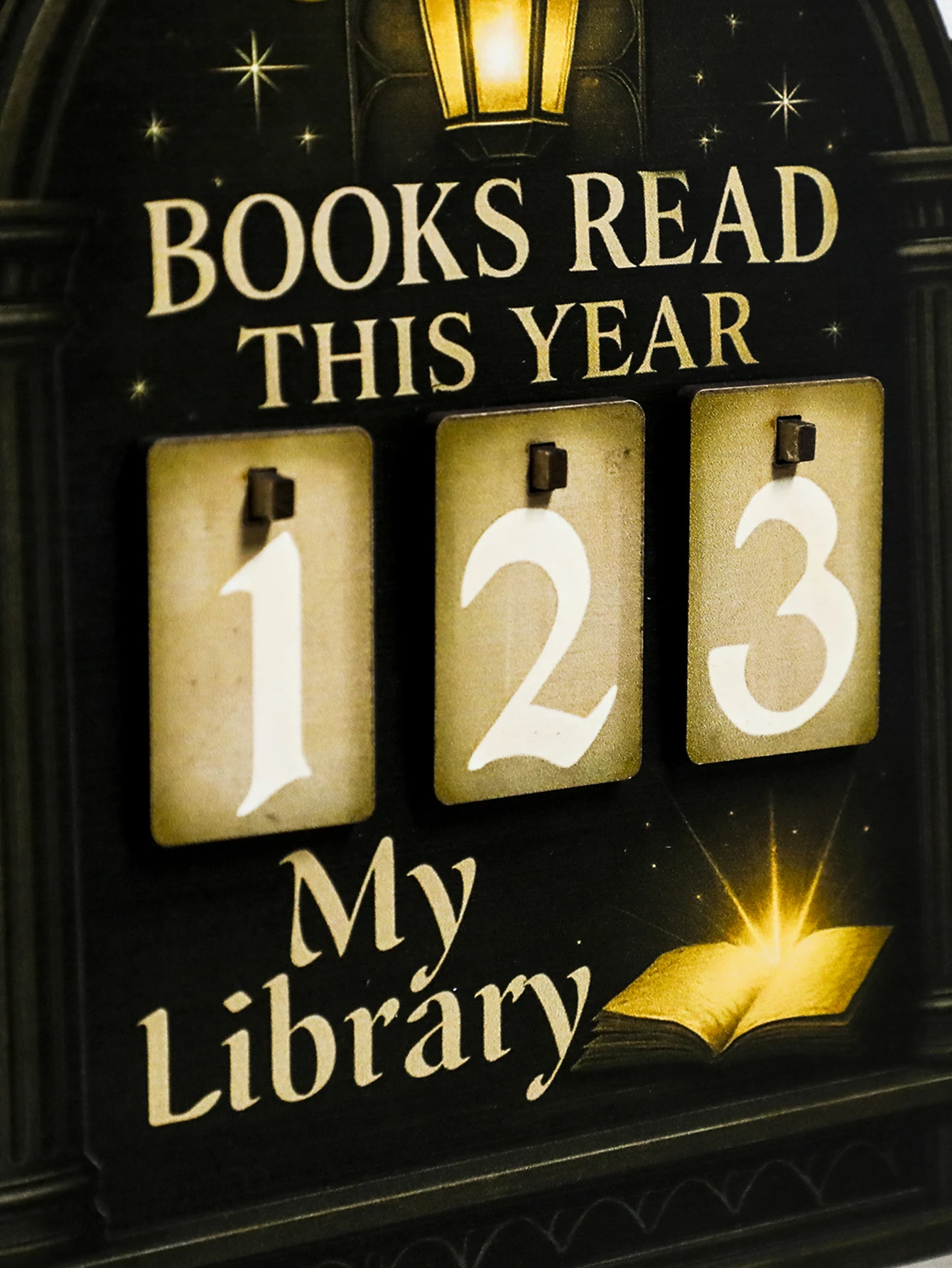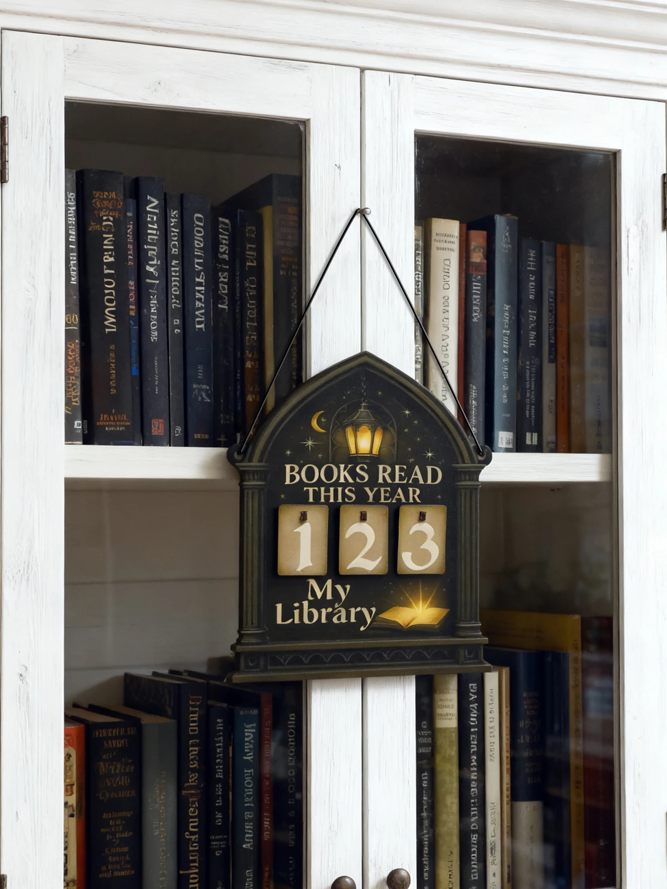 Featuring a unique gothic lantern and moon design, this book tracker sign adds a mystical touch to any library decor.